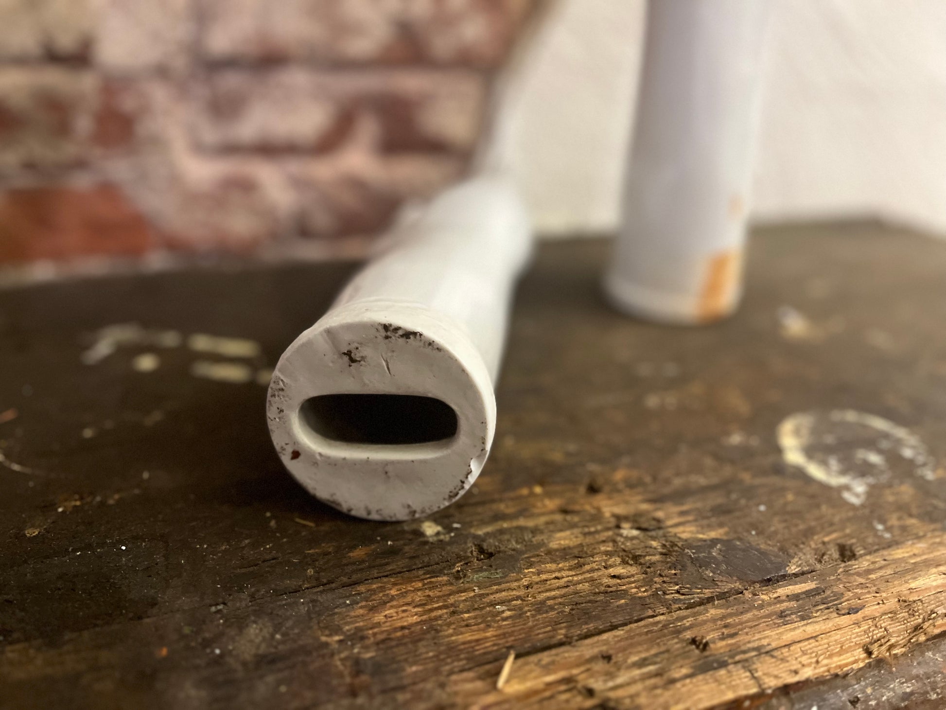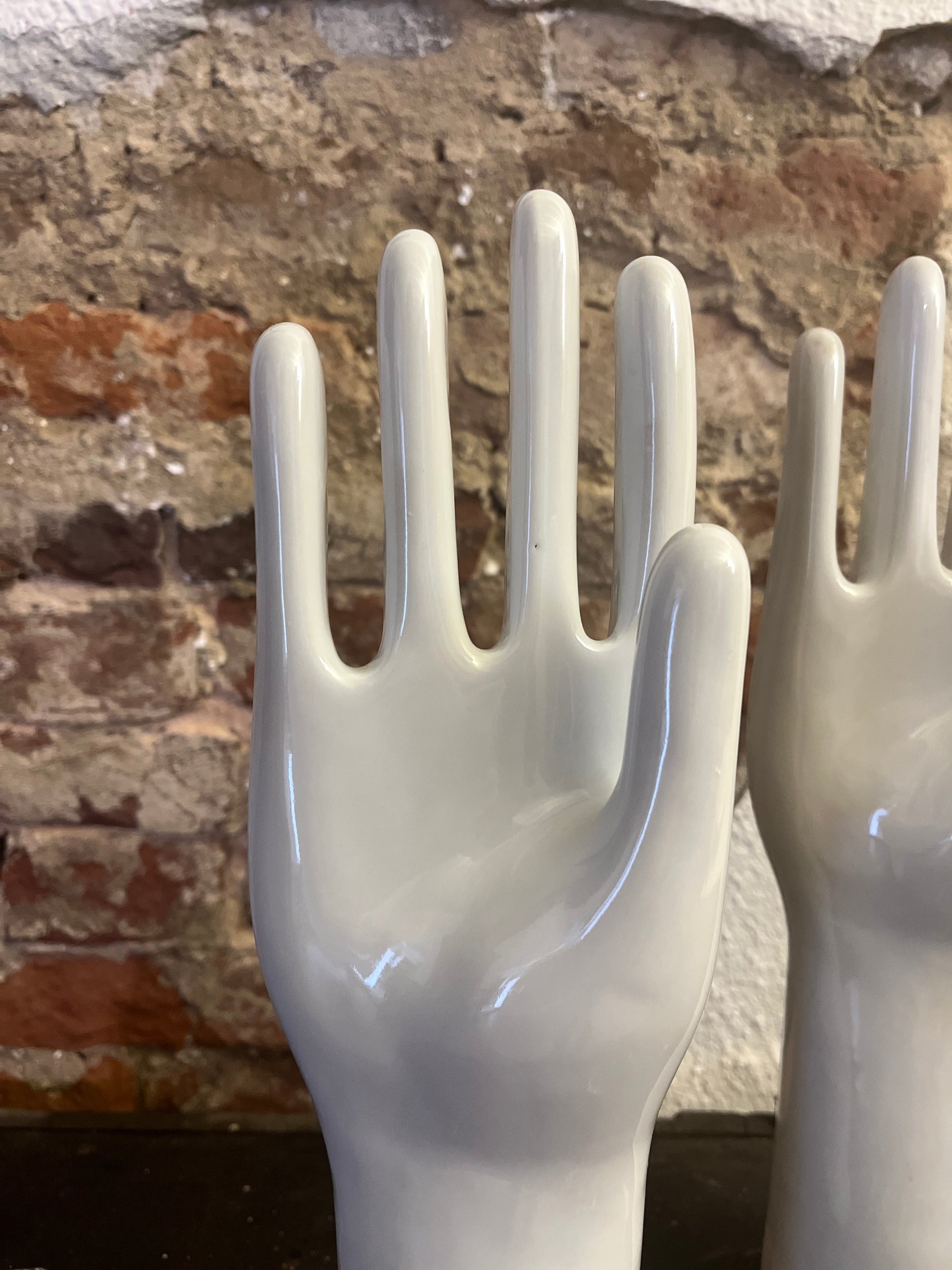 Add a touch of industrial charm to your collection with these vintage porcelain glove molds from the 1950s. Originally used in the production of gloves, these distinctive items feature both left and right hands. With dimensions of 8cm x 11cm x 38cm, they make for striking decorative pieces or unique additions to any vintage or industrial-themed decor.